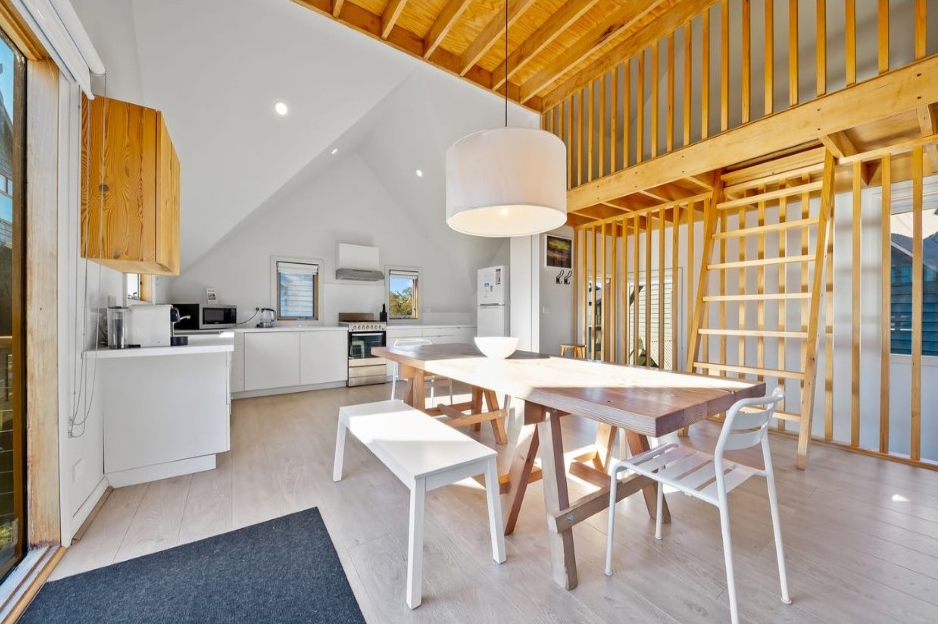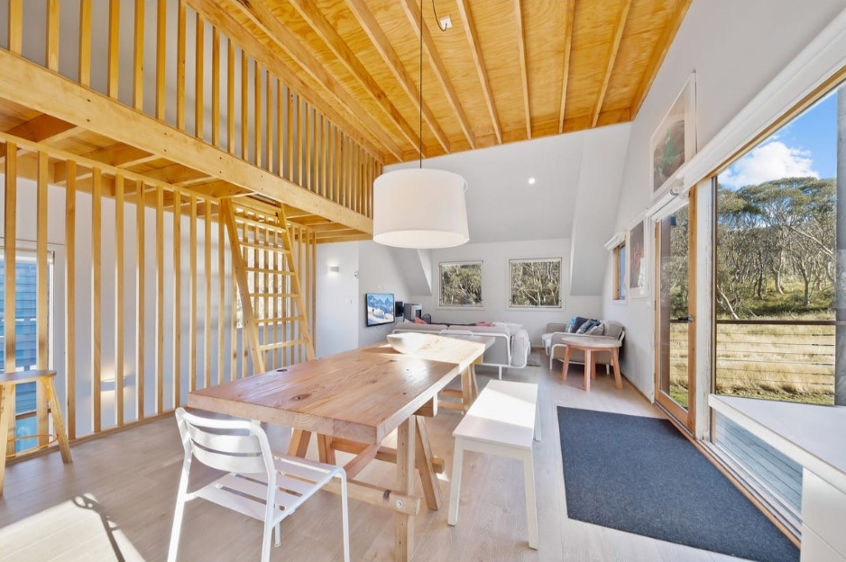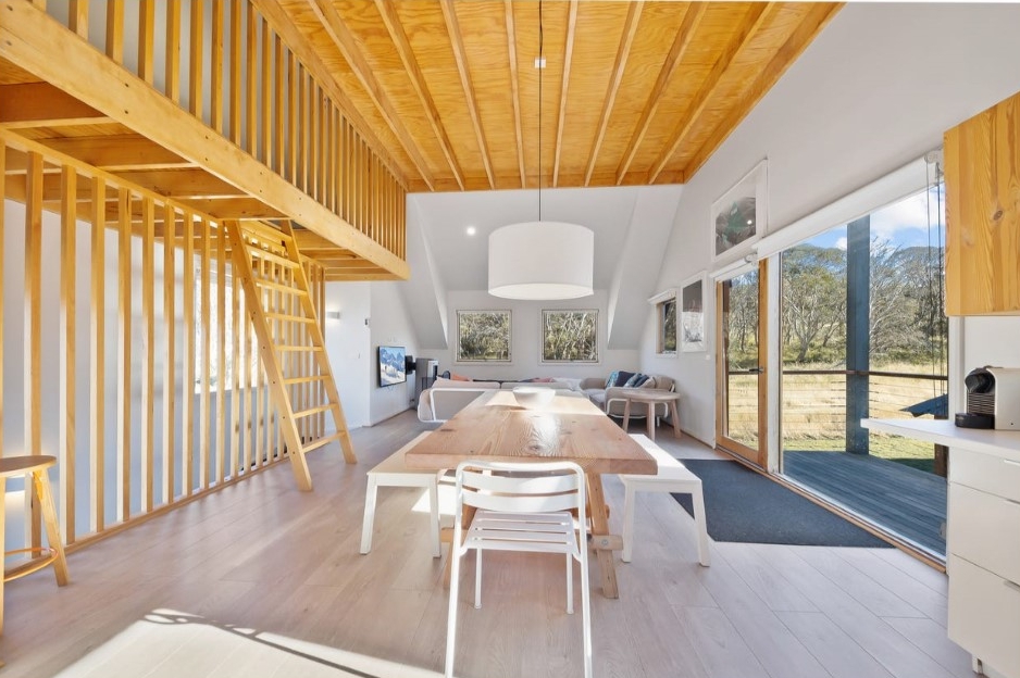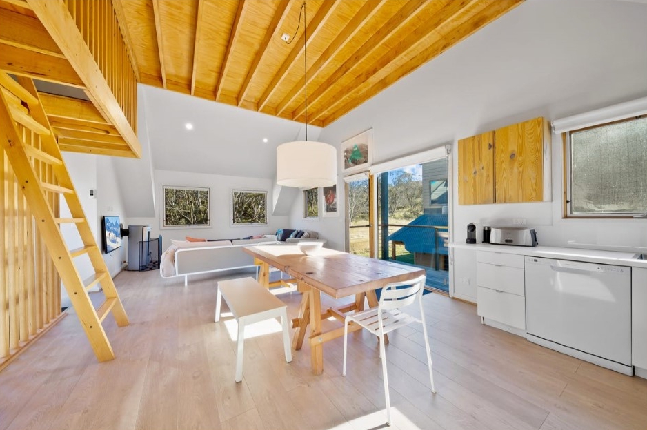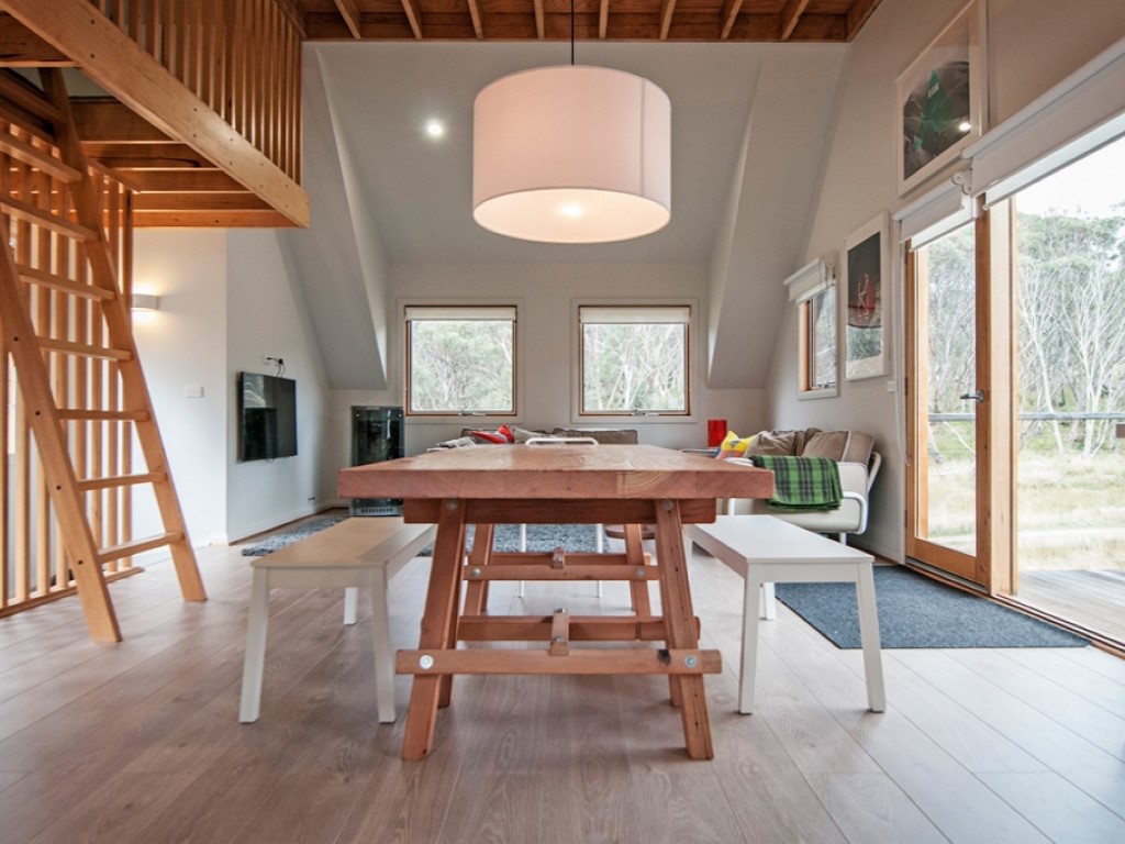 This 3 bedroom chalet is unique to Dinner Plain in that it boast all that you would expect from a contemporary home located in inner city Melbourne. The loft style high ceilings, modern furnishings including a large reclaimed Oregon dining table as well as all new appliances make for an extremely comfortable stay. With double blinds over huge windows, a real gas flame fire upstairs and hydronic gas heating downstairs, Altitude 1570 is the perfect property for the summer and winter months.