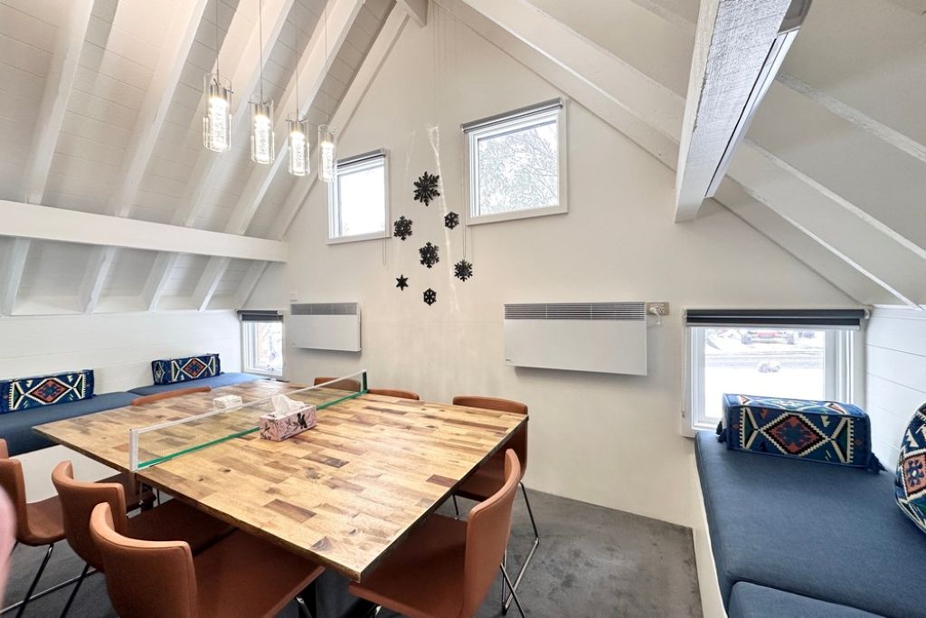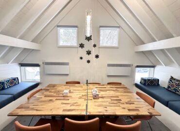 Beinn Bhreagh can accommodate maximum of seven people. Ground floor bedroom has a set of single bunk beds, bathroom with shower, toilet and vanity along with washing machine and clothes dryer. The ground floor also consists of the fully equipped kitchen, dining area and lounge area. With an enclosed wood combustion unit.