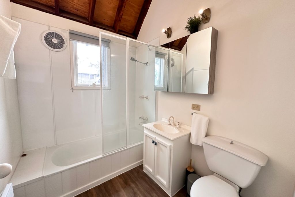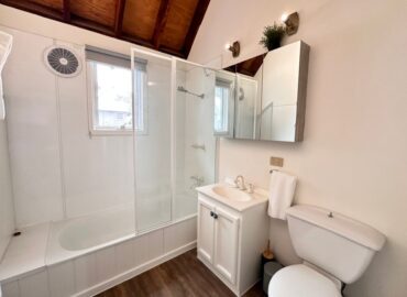 Upstairs you’ll find second bathroom with shower, toilet and vanity. Master bedroom has a queen bed and other bedroom with a queen bed and a single bed. Free wifi available. Plenty of parking on site. Beinn Bhreagh is perfect for families.