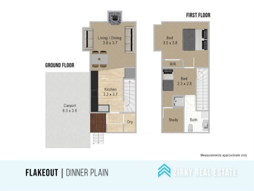 This well-maintained property is over two levels with outstanding views. The ground floor has an open plan living room with kitchen and dining. Upstairs, you’ll find the main bedroom with a king bed and a window seat to enjoy the views. The second space has a tri- bunk. You will also find the combined laundry and bathroom. Heating with a slow combustion unit on the ground floor and electric panel heating throughout. There is a carport for one vehicle and extra parking for two cars. Directly across the road, there are ponds and the Alpine National Park, to make Flake Out an ideal winter destination and summer retreat.