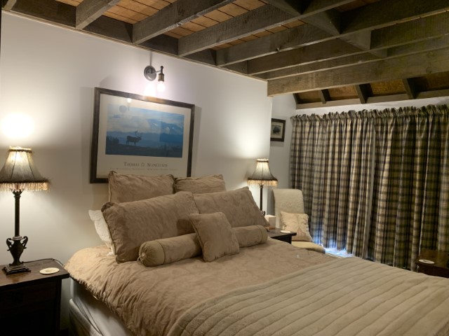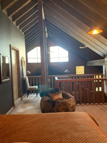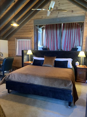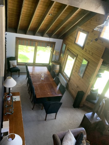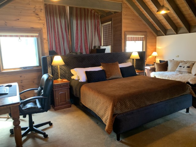 The ‘great room’ has triple height ceiling, a large stone open, fireplace and is the perfect place for lounging, watching movies (either using streaming services or from the extensive DVD collection), toasting marshmallows, reading or playing board games. The large dining table can seat ten comfortably and the gourmet kitchen, with a beautiful Italian granite bench top, is exceptionally well equipped and includes a coffee machine and break maker (so bring along your favorite beans and bread mix).