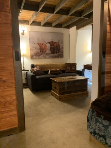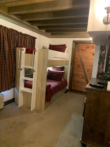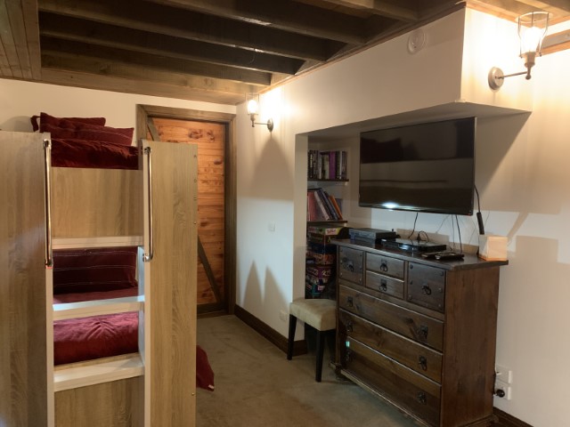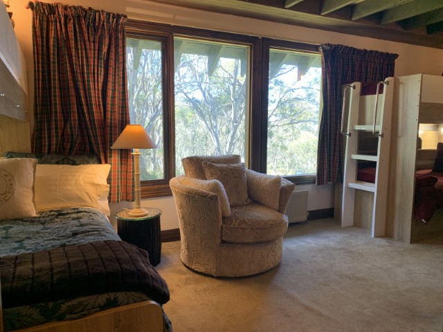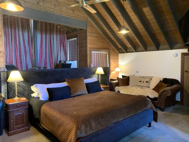 The master bedroom is upstairs and overlooks the ‘great room’, it is luxurious and spacious, with a king bed, a cozy lounge, desk, a television/DVD player and an ensuite with heated towel rails. The second bedroom is on the ground floor and is a cozy space with a television/DVD player and is located across the hall from the kids retreat. The retreat is fantastic as it contains 1 tri bunk and 1 single bunk set, a lounge (which is also a sofa bed with an innerspring mattress), a TV, games console including DVD player, games and books.