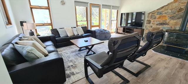 - Equipment: BBQ, BBQ Utensils, Bedding, Bedside Tables, , Coffee Machine - BYO PODS, Dishwasher, Dryer, Electric Panel Heaters, Esky, Fridge, Gas Cook Top, Gas Heater, Hair Dryers (2), High Chair, Iron, Ironing Board, Kitchenware, Microwave, Oven, Port-A-Cot, Smart TVs, Smoke Detectors, Streaming Services, Toboggans (2), Vacuum, Walk in Robe, Washing Machine