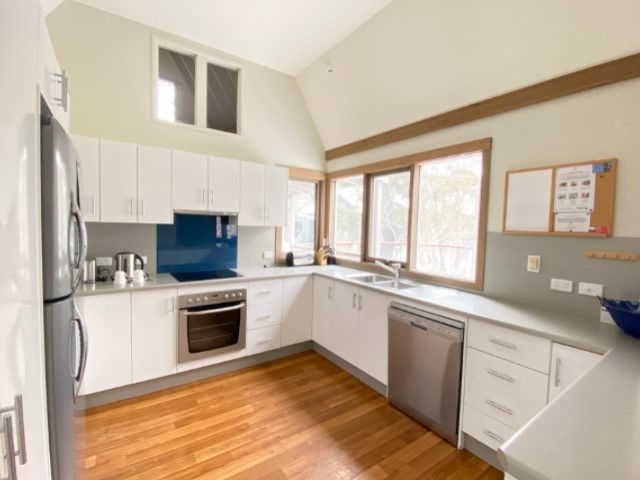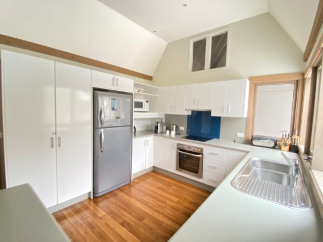 Three bedrooms in total. Sleeping a maximum of eight people. Two bedrooms with queen beds and the other with two sets of single bunks beds. Open plan of the kitchen, lounge and dining areas. Fully equipped kitchen. Free wifi available. Heating comprises of a slow combustion unit along with electric panel heaters throughout. Verandering is perfect for families.